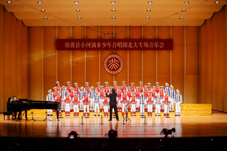 与教务长办公室、艺术学院、国家发展研究院、教育基金会、云南省大理白族自治州弥渡县人民政府等单位联合,在百周年纪念讲堂联合举办“音乐厅里的思政课:弥渡县小河淌水少年合唱团北京大学专场音乐会”,吸引1000多名师生观看演出。此次音乐会是定点帮扶工作与思政教育有机结合的一次创新尝试,宣传展示了弥渡多民族民俗艺术中蕴含的中华优秀传统文化和民族文化特色,生动讲述了北大推进定点帮扶和新时代乡村振兴工作的动人故事,也探索了大中小一体化思政教育新方式,具有丰富美育元素,增强了各方在中国式现代化建设中挺膺担当、切实肩负起新时代新征程使命任务的奋斗热情。
