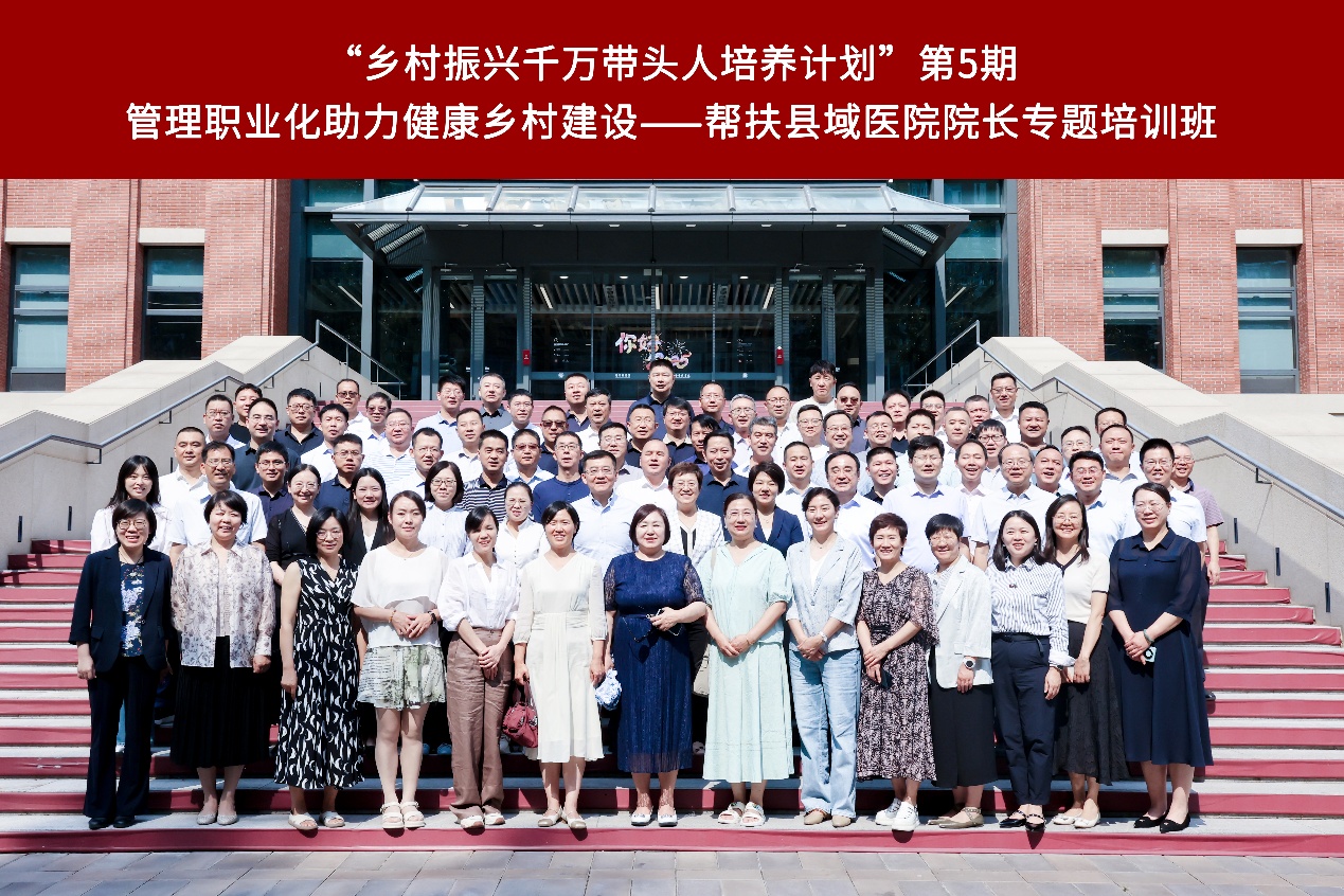6月25日,“乡村振兴千万带头人培养计划”第5期:“管理职业化助力健康乡村建设——帮扶县域医院院长专题培训班”启动仪式暨第一课在北京大学举行。